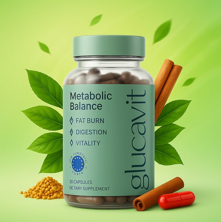 Glucavit är ett kosttillskott baserat på utvalda ingredienser. Det är avsett för vuxna som vill komplettera sin dagliga rutin av balanserad kost och motion. Formuleringen är utvecklad med fokus på allmänt välbefinnande. Glucavit är inte ett läkemedel och ersätter ingen medicinsk behandling. Resultat kan variera.